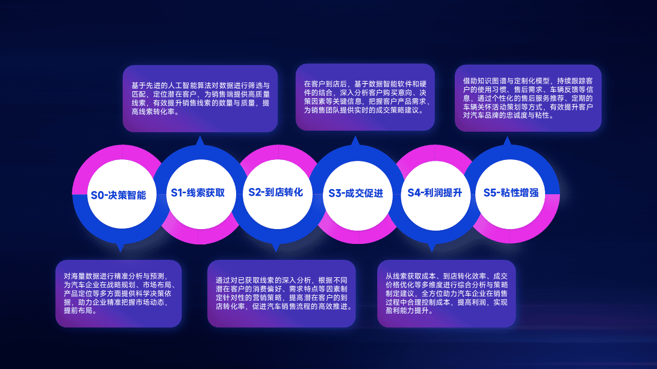 通过拓宽潜在客户来源、、、优化线索分配并提高到店转化率,,,,以增强销售效率。。同时,,利用线索数据不断优化分析模型,,有效提升转化率,,,,扩大营销影响力。。